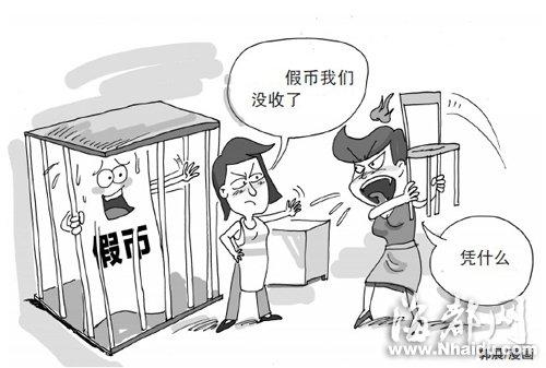 “对不起,小姐,这张假钞我们必须没收并报警,不能给你。”收银员说。小菲一听急了,和收银员发生争执,再加上旁边看热闹的人群中,不时有人起哄,火爆脾气的小菲,顿时火上心头,抡起旁边的木凳子就砸向收银员。所幸收银员及时避开,没有被砸中,旁人赶紧上前拉住小菲。