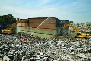观山湖区拆违人员正在拆除一栋违法建筑。 徐其飞摄