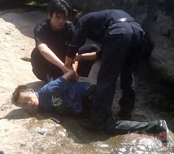 瘾君子盗车跳河逃跑 警民撑船将其擒获(图)