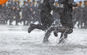 昨日上午,深圳湾体育中心附近F1赛场。一场在红色暴雨天气中持续了两个多小时的“反恐演练”,最终以“击毙”多名“暴徒”完美收工。