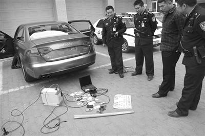 4月18日16时40分许,呼兰公安分局民警发现了一处“伪基站”发出的信号,信号在呼兰区利民开发区名流新城小区梭边鱼饭店附近中断,于是民警立刻赶到信号中断的地方。穿着便衣的民警装作闲逛,眼神却盯住了一辆灰色的奥迪轿车。车内的前排副驾驶处放着笔记本电脑,而车的后排座位中间放着一个盒子,后座上面还架着一个小型的发射天线,这辆奥迪车果然就是个移动的“伪基站”。