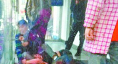 派出所门口,她趴在地上四脚朝天,口中高呼:“警察打人!”,边喊边踹想来搀扶她的民警。