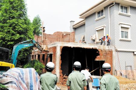 长沙一建筑被拆除 城管:部分别墅业主隐蔽扩建