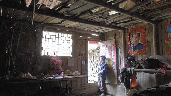 距离重庆市区约200公里的彭水县乔梓乡,记者遇到了中午放学回家的宋家外孙女唐江川,她带着记者翻过大山,来到了她的外祖父宋世昌的家里。远远望去,破旧的屋子门口杂乱地堆放着柴火和家什,几根木柱撑起了屋梁,屋里更是没有一件像样的家具。多年来,宋世昌一直独居在这座破落的木屋里,他时常呆坐在家门口,自言自语,口中吐出最多的是“错”和“不对”几个字。
