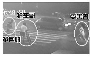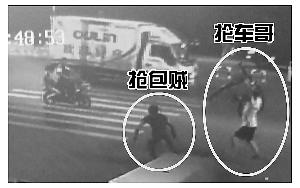 “抡车哥”路见不平砸倒抢包贼 路人合力将贼按住