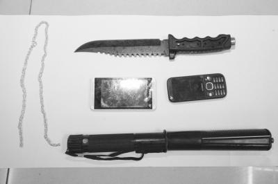 赶到的飞龙队员迅速将该房包围,并喝令嫌疑人立即缴械投案,但嫌疑人情绪激动不予配合。在口头警告无效的情况下,现场民警鸣枪示警。办案民警介绍,嫌疑人迫于压力,最终将电棍和匕首从二楼丢到一楼,束手就擒。