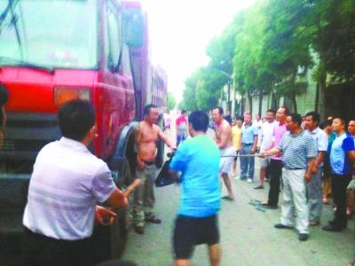 小偷(图左二赤膊者)被居民们团团围住。通讯员王念 摄