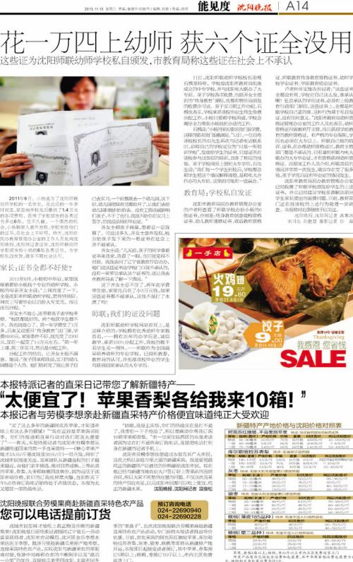 2011年8月,小杨初中毕业后,家人想让她找个幼师学校。小杨的母亲齐女士上网搜索到沈阳师联幼师学校,“网上宣传特别好,写着毕业以后给大专文凭,而且还包分配。”