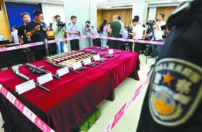 现场展示收缴的枪支弹药。实习生周迪 摄