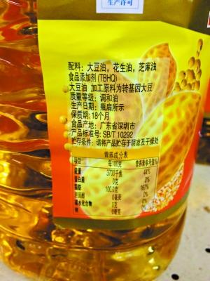 与此相比,转基因标识却难见踪影。几经询问和查找,记者在某品牌调和油的配料表中发现了“加工原料为转基因大豆”、“加工原料为转基因油菜籽”等字样;同时该字体与其他的食品产地、生产日期、产品标准号等字体无异,与非转基因标识不可相提并论。
