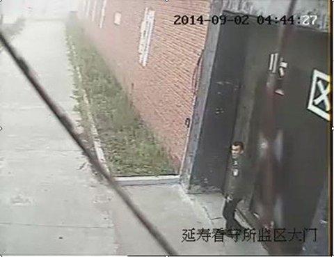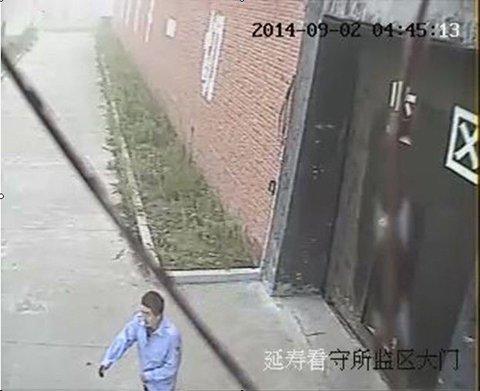 看守所一名哨兵在接受中新网记者采访时介绍,4时40分许,一名身着警服的人从看守所内走出,由于行动怪异,哨兵提高了警惕,一直对此人的举动进行监视。