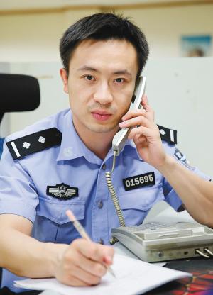 交警支队秩序处秩序科副科长董海峰(上)、宣法处法制科副科长张鹏在本报接听读者热线