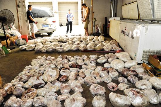 现场查获的457只穿山甲 羊城晚报记者 宋金峪 摄
