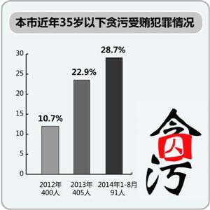 然而,如今的不少案例中,犯罪嫌疑人年龄不大、走上关键岗位时间不长,但作风腐化堕落、涉案金额同样触目惊心。来自本市检察机关的一组数据显示,腐败分子中的“年轻面孔”有逐渐增多的趋势。