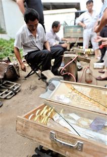 昨日,在东湖新技术开发区佛祖岭综合大市场旁,两名湖南籍男子收取一定加工费后,竟帮市民熔化硬币做首饰(如图)。记者通报后,警方赶到当即制止。