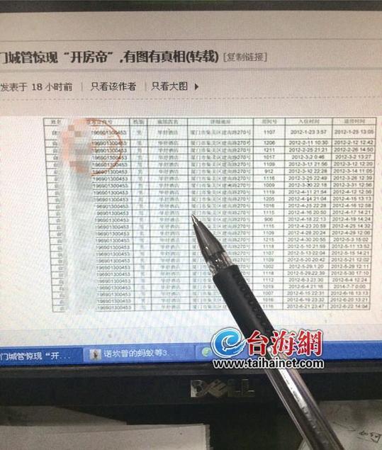 厦门一城管31个月开房近150次 开房记录被曝光