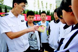 ▲工作人员向学生们讲授伪劣食品辨别方法。 记者 王帅 摄