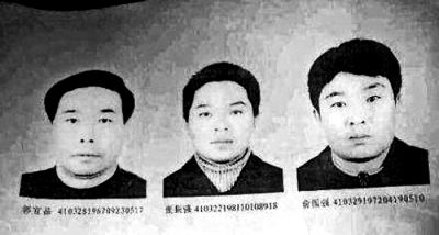 警方发布排查照片:从左至右为郭宜品、张振强和俞国强