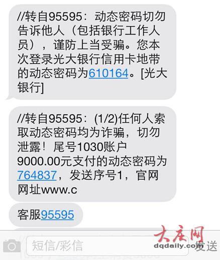 从办完卡开始,沙女士经常接到自称是光大银行工作人员的电话,一开始沙女士没有理会,9月21日,她收到了一条信息,上面写着要给沙女士的这张光大银行信用卡提升信用额度,后面有一串6位数的验证码。随后,沙女士的电话就响了,对方称自己是光大银行的工作人员,想提升信用额度必须先发验证码。沙女士挂了电话后,觉得这次不会有错,就把验证码发了过去。