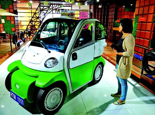 造型时尚的四轮电动车吸引了不少市民。 本报记者 刘雅菲 摄