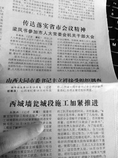 当地 《大同日报》今日刊登丰立祥被查消息