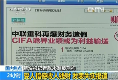 查处决定指出,经初步查明,羊城晚报报业集团主管主办的《新快报》在2012年9月至2013年8月期间,刊发了多篇涉及上市公司中联重科的失实报道。新快报社新闻采编管理混乱,记者陈永洲因涉嫌损害商业信誉罪被检方批捕。按照有关法律法规,做出如下处理: