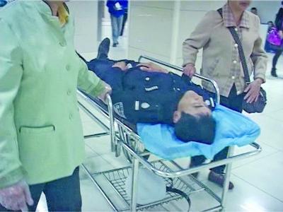 大图:被打伤的协警被送进医院抢救。小图:男子骑的电瓶车。叶方龙 摄