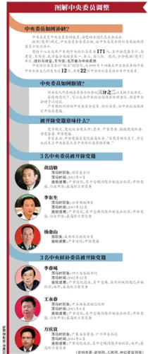 ●四中全会按照党章规定,递补中央候补委员马建堂、王作安、毛万春3人为中央委员会委员 ●成都军区副司令员杨金山、国资委原主任蒋洁敏、公安部原副部长李东生等6人被确认开除党籍