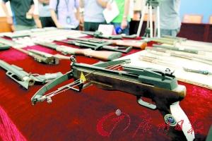 警方展示收缴的部分枪支。本版图/记者张宇杰摄
