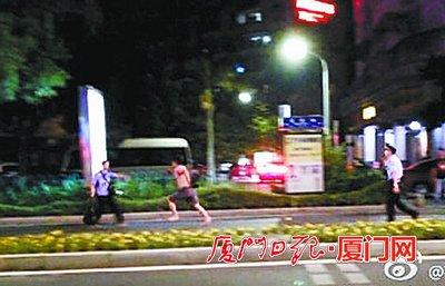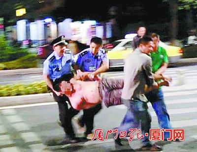 厦门醉汉与的哥纠纷怒砸车 追打民警将其绊倒