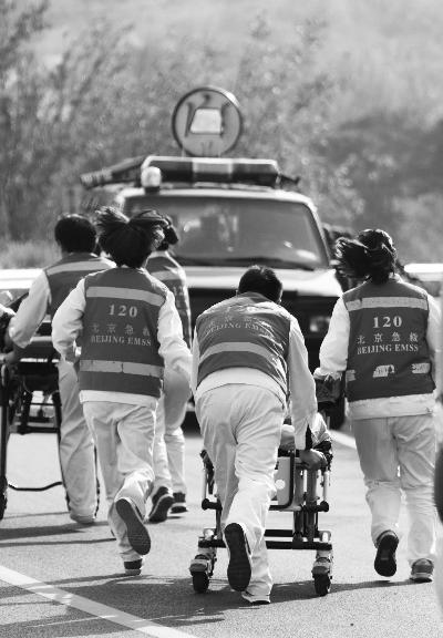 ▲救援 医护人员急救伤者 摄/法制晚报特约记者 李光印
