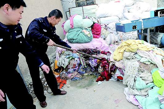 废品收购站收废布料 硫酸消毒液漂出16吨“黑心棉”