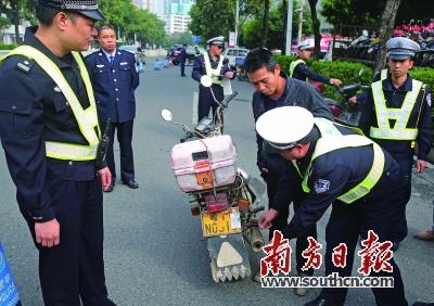 不过记者在走访中,发现了一些尴尬的情况。在15日创文交通秩序整治攻坚战首日,仅城区交警部门在市区设6个查车点就查扣163辆摩托车,其中绝大部分为燃油助力车;而在旧城松岗路“摩托车销售一条街”上,一天就卖出上百台燃油助力车。