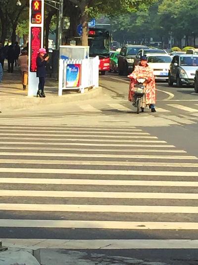 11月16日中午11时许,在武都路口十字处,一个身穿黑色大衣、戴着粉红帽子的女孩,站在人行道信号灯处来回张望过往的人群。信号灯变为绿灯时,她却不过马路,而是寻找旁边的行人搭讪。记者走上前去,正好遇到红灯时,这位粉红帽子女孩开始过来搭讪。
