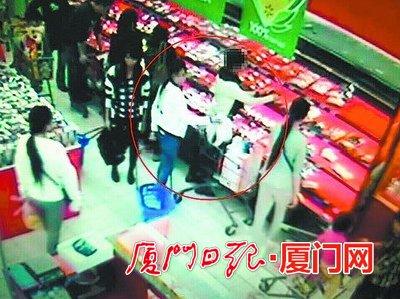 15日晚上,陈小姐和母亲一起到湖里万达的沃尔玛超市购物,身上的挎包放在超市购物车上,哪知中途转身挑选商品时,挎包就被“顺手牵羊”偷走了。事后她们在超市值班室调取监控,大吃一惊:两名女子在不到10秒的时间内合作偷走挎包,现场还有另两名女子疑似为同伙。