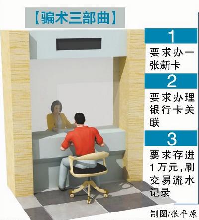之后,“银行审核部”的工作人员又说,按照无抵押贷款程序,需要查看贷款人的经济能力,而这个证明也不难实现,只要沈先生将1万元存取账户再取出来,多次存取操作后,银行就可看到卡上大额的交易流水记录,证明他的经济能力。沈先生一一照做,1万元多次存取之后,可在最后一次存进去,再要取出来时,发现账户上的1万元突然消失了。他慌忙报警。