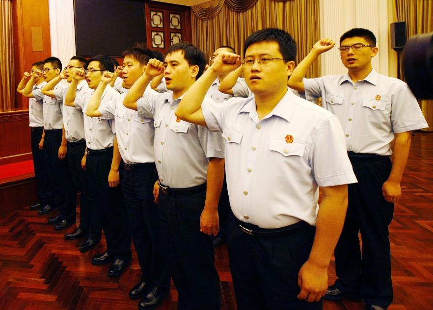 9月5日上午,上海召开首批法官助理、检察官助理任命大会,这是新中国成立以来中国产生的首批法官助理、检察官助理。图为新任法官助理在宣誓仪式上宣读誓词 方喆/摄