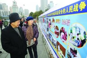 ▲市民观看假冒伪劣食品药品整治宣传展板 王伟倩 摄