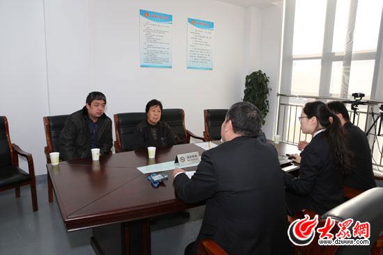 山东高院负责聂树斌案复查工作的合议庭法官会见聂树斌近亲属和其代理人,图为会见现场。