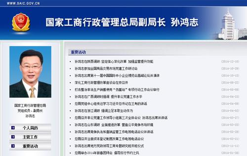 由于消息突然,在记者截稿前,工商总局官网尚未替换孙鸿志简历,他的名字仍在“总局领导”的栏目内。