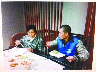 民警特地为江龙友在看守所请了假,并为这对久别21年的母子准备了简单的团圆午餐。此刻,连用来讯问嫌疑人的讯问室都显得那样温馨。钱二梅一直看着儿子,一只手一个劲地为江龙友夹菜,一只手抓着儿子的手不愿松开,江龙友也往妈妈碗里夹菜。