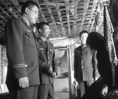 昨日,葫芦岛市季家屯边防派出所民警来到吸毒女孩家劝导女孩。特约记者 胡清 摄