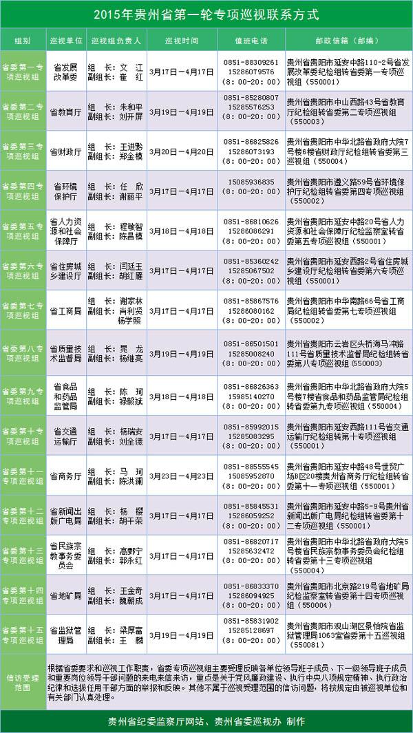 贵州公布2015年首轮专项巡视单位和电话邮箱(表)