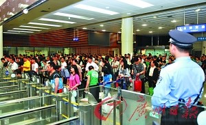 昨日上午9时,记者来到罗湖口岸联检大楼时,发现此处过关秩序井然,并且此时的过关人数也不多。现场的工作人员对记者说,昨日通关的人员与平常差不多,昨日晚上也并没有人滞留在此处。