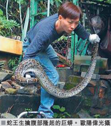 香港一巨蟒生吞花猫 腹部胀大卡在栏杆被逮(图)