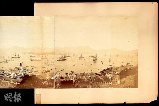 港岛全景(1890年) 1890年的港岛全景图,当时海上交通已甚为繁忙。(英国国家档案馆)来源:香港《明报》