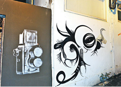 香港上环一画廊后巷墙壁20日晚深夜被人涂鸦。香港《明报》图