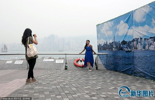 香港空气污染严重 游客与“假蓝天”合影(图)(3)