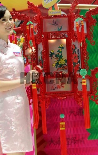 南宋宫廷花灯9月12日在媒体预览展示。耀红色的骨架显示出其古色古香的韵味,配上灯身内部的走马灯,气质优美。香港中通社图片