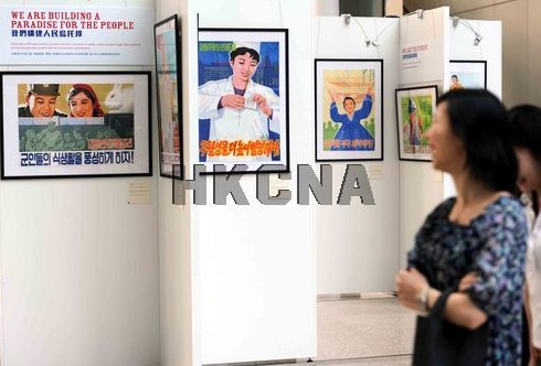 10月7日,香港一商厦展出三十多幅手绘海报。香港有收藏家多次到朝鲜搜集手绘的政府宣传海报,让大家从海报或许看到这个国家正在转变。香港中通社图片